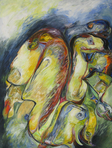Syndens æble – format 100×100 cm – i sølv svæveramme