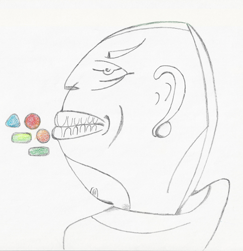 En serie på otte tegninger der filosoferer over medicinsk anvendelser og påvirkninger, udført med blyant og oliekridt på papir, og en serie malerier med tanker over det organiske