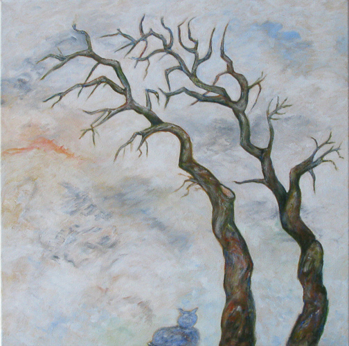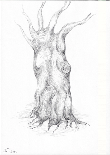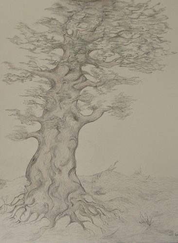 Det store træ – format 70x 85 cm, olieridt og kul