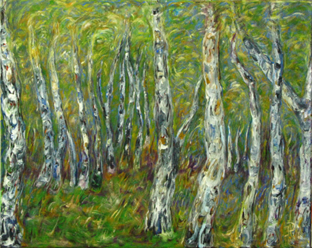 Birketræer i våren – format 50×40 cm